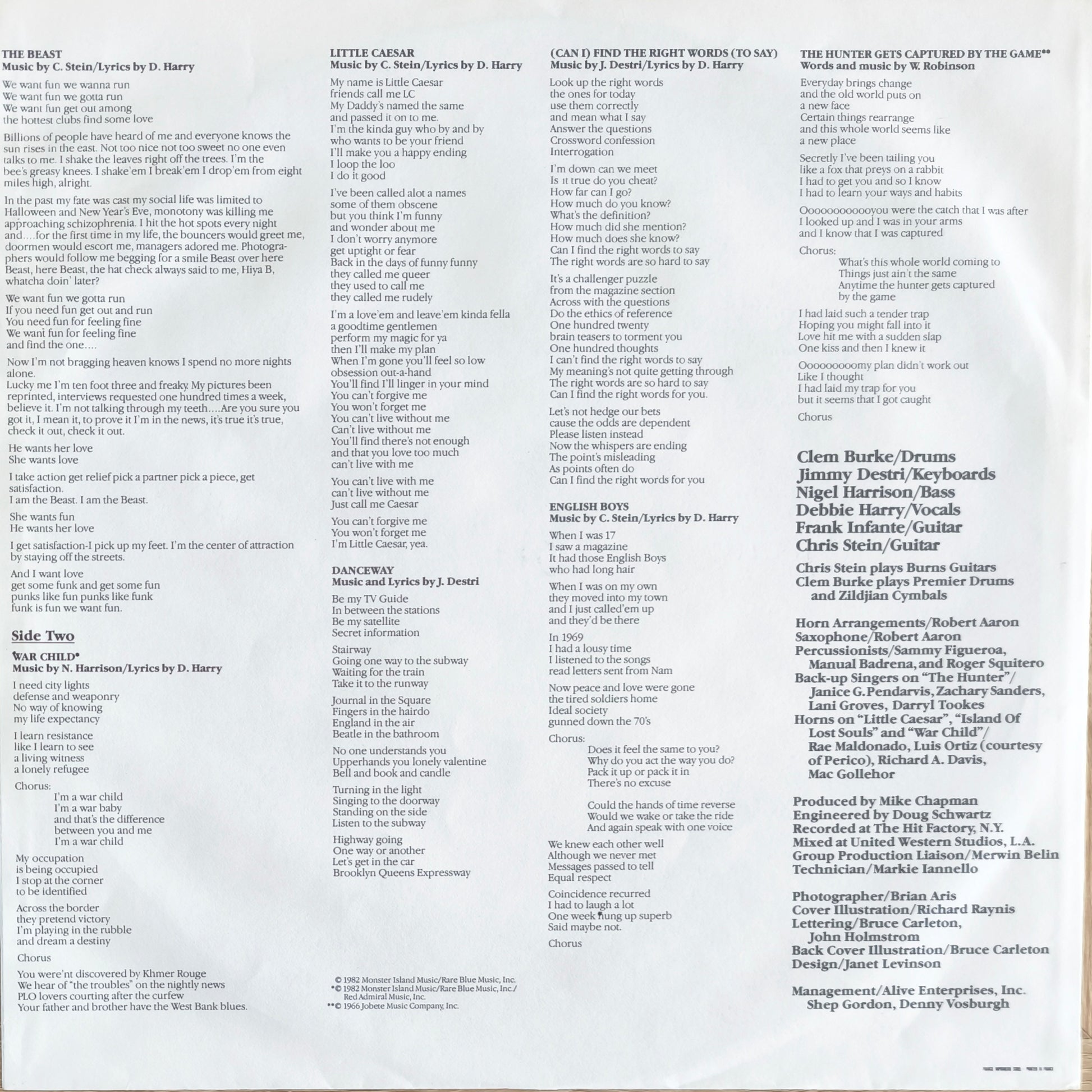 Le chant du cygne de la première ère Blondie. Un album exploratoire où le groupe s'essaye à des sonorités plus exotiques, reggae et même jazzy, tout en gardant l'efficacité Pop-Rock qui a fait leur succès mondial. Un disque indispensable pour compléter la discographie du groupe le plus iconique de New York.