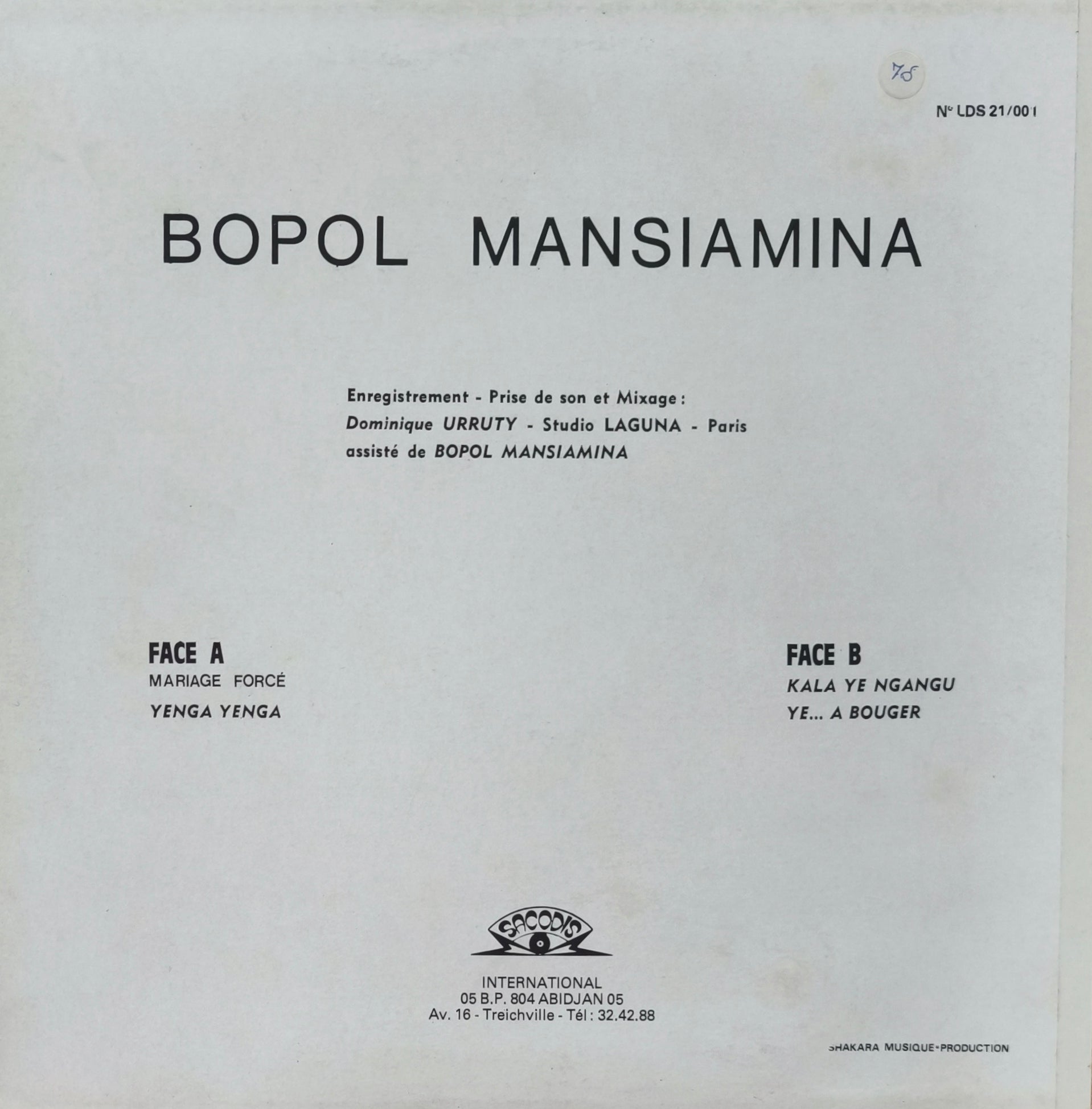 Mariage Forcé est le troisième album studio du chanteur congolais Bopol Mansiamina sorti en 1983.