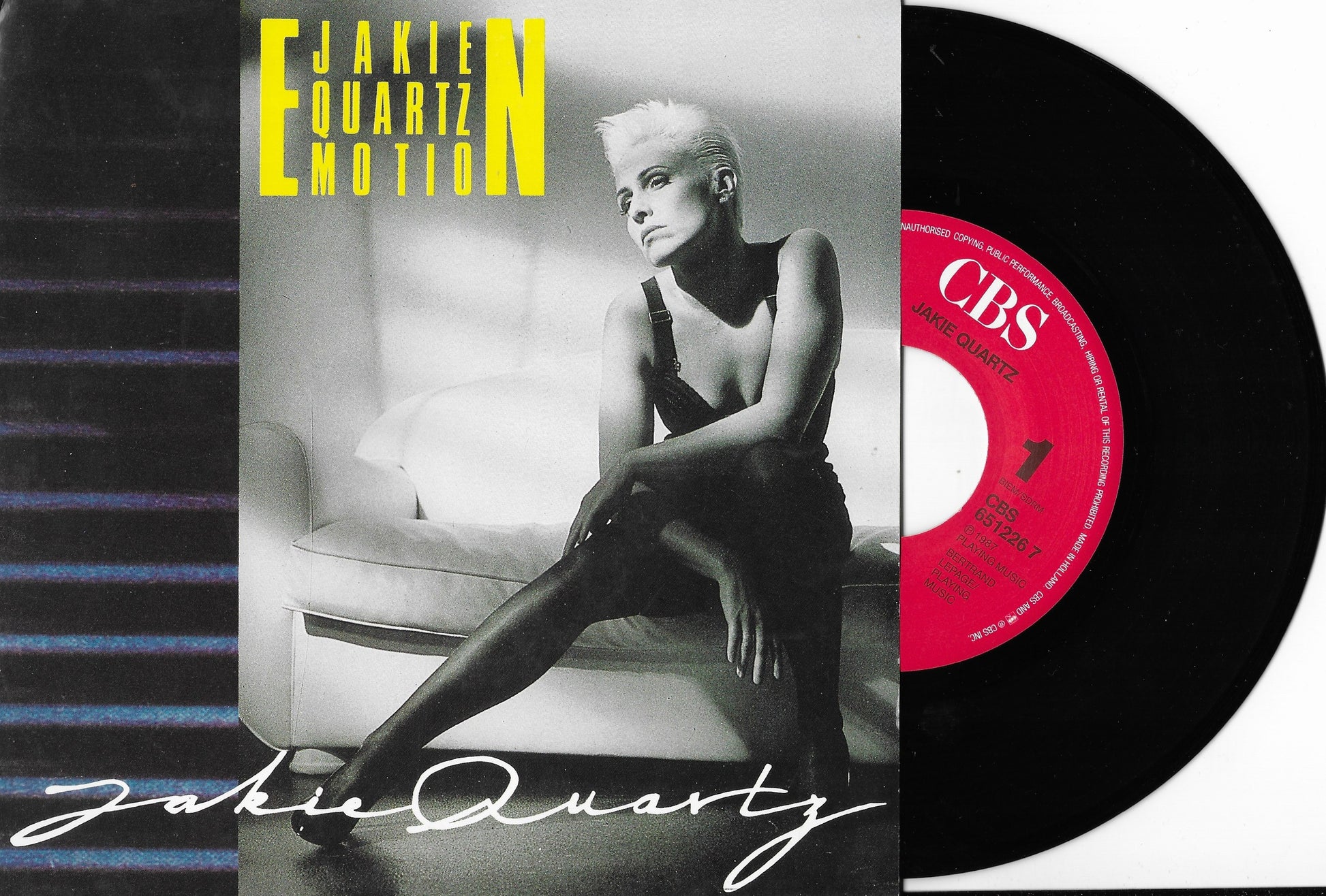Sorti en 1988, le 45 tours "Émotion" de Jakie Quartz est un titre phare de la pop synthétique française de la fin des années 80. Après le succès colossal de "Mise au point", l'artiste revient avec cette composition coécrite avec Gérard Anfosso, offrant une mélodie sophistiquée portée par des arrangements de synthétiseurs modernes et une rythmique électronique entraînante. Ce disque vinyle 7 pouces met en relief la voix singulière et habitée de Jakie Quartz, mêlant habilement mélancolie et énergie dance.