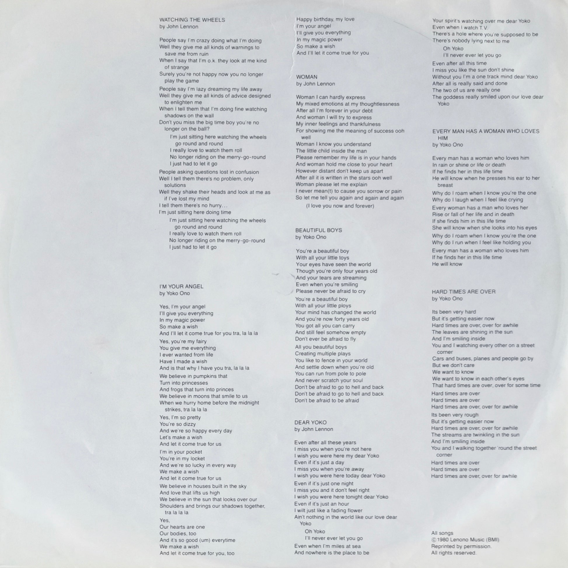 Ultime témoignage artistique de John Lennon publié quelques semaines avant sa disparition, cet album célèbre le retour à la vie et l'amour retrouvé. Ce pressage original français de 1980 (label Geffen Records / Distribué par WEA) restitue avec une grande chaleur les tubes « (Just Like) Starting Over » et « Woman ».