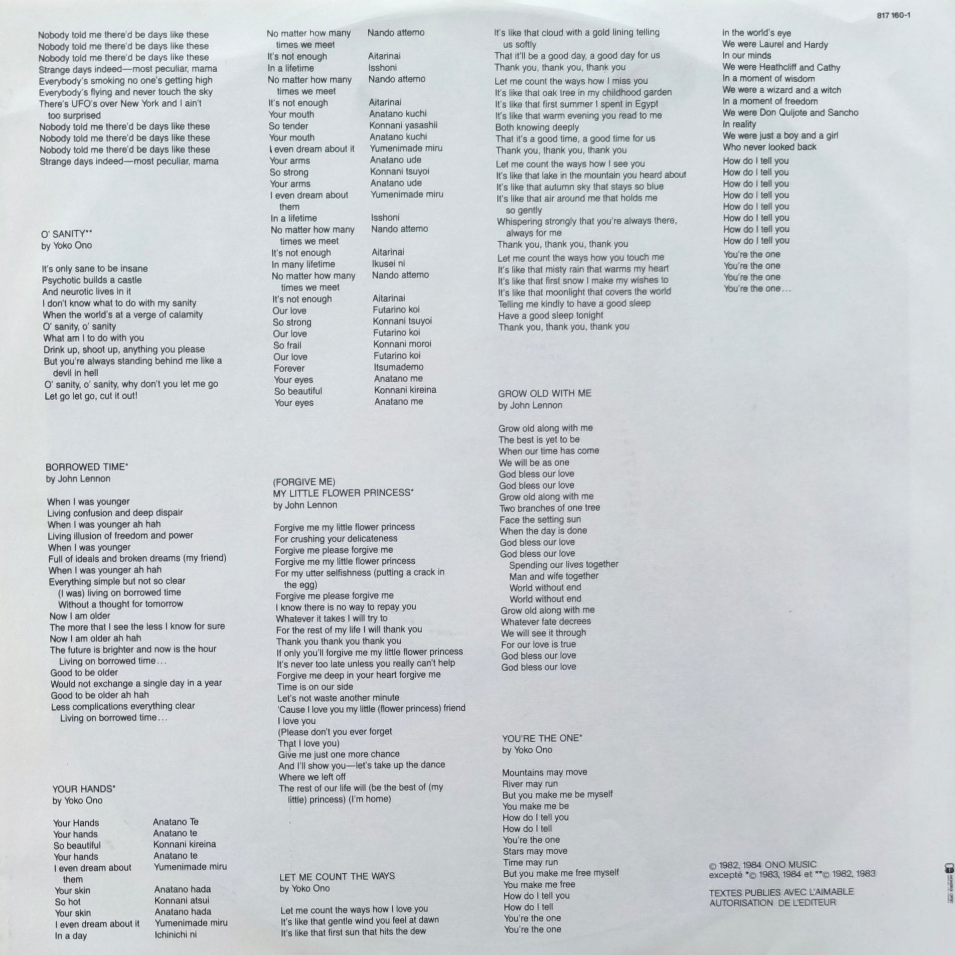 JOHN LENNON & YOKO ONO - Milk And Honey