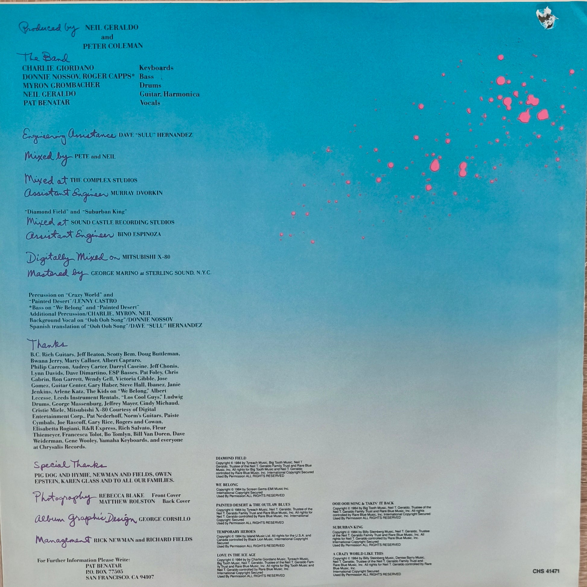 PAT BENATAR - Tropico (Pressage Canada)