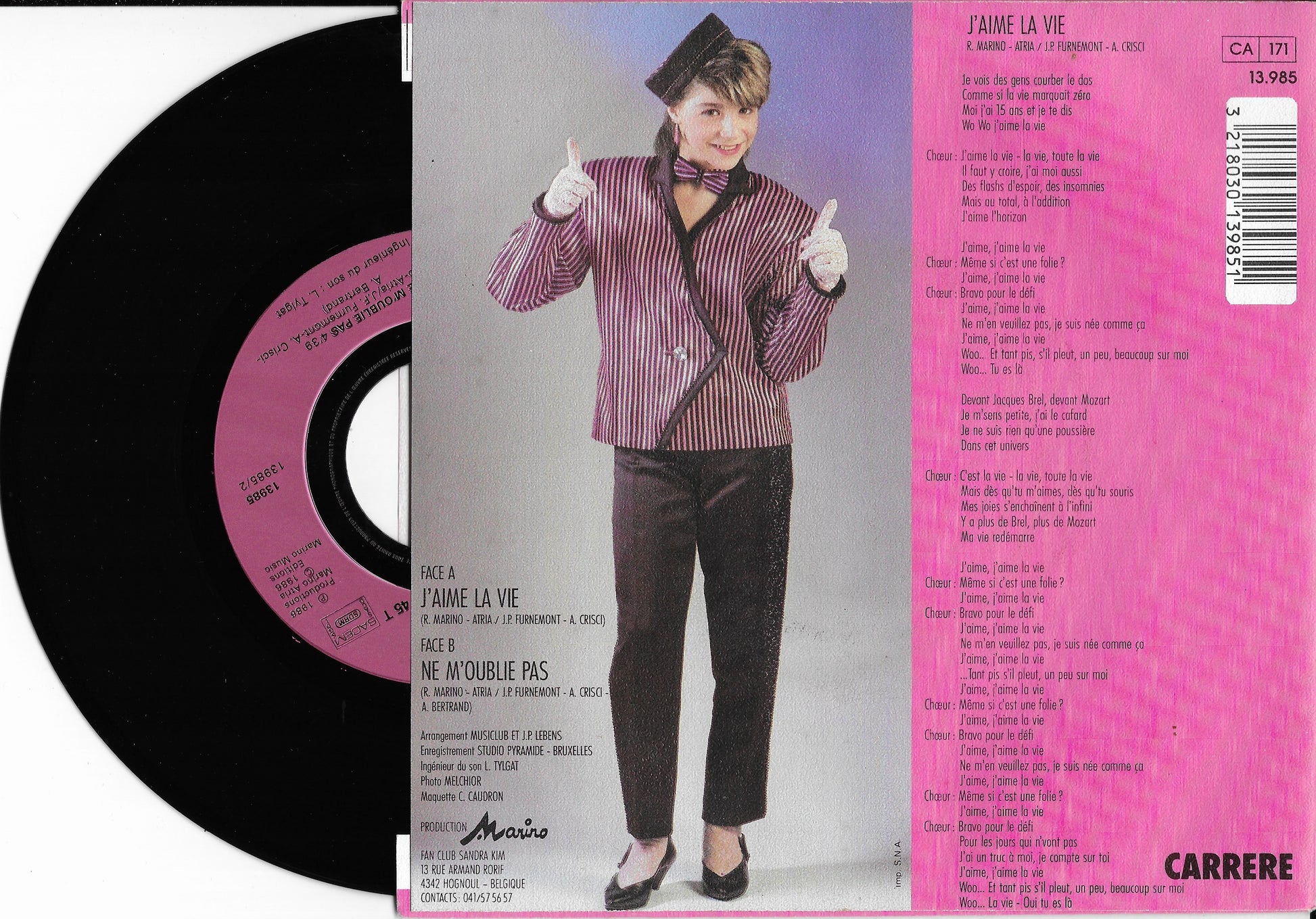 Sorti en 1986, "J'aime La Vie" est le titre qui a permis à Sandra Kim de remporter le Concours Eurovision de la Chanson pour la Belgique. À seulement 13 ans (bien qu'annoncée plus âgée à l'époque), l'artiste livre une performance pleine d'énergie et de fraîcheur. Ce 45 tours est devenu un immense succès commercial à travers toute l'Europe