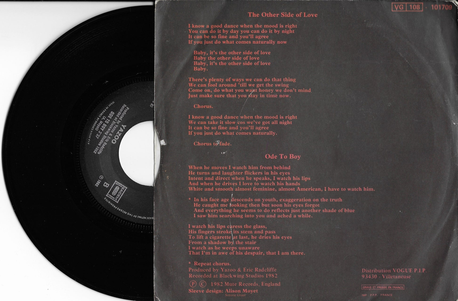 " The Other Side of Love " est une chanson du groupe de synth-pop britannique Yazoo, sorti en 1982 en tant que quatrième single. Le single a culminé à la 13e place du UK Singles Chart , ce qui en fait le single le moins réussi du groupe et le seul de leurs quatre singles à manquer le top trois au Royaume-Uni. Le morceau n'était à l'origine inclus sur aucun des albums du groupe (il a ensuite été ajouté à une réédition de Upstairs at Eric's).