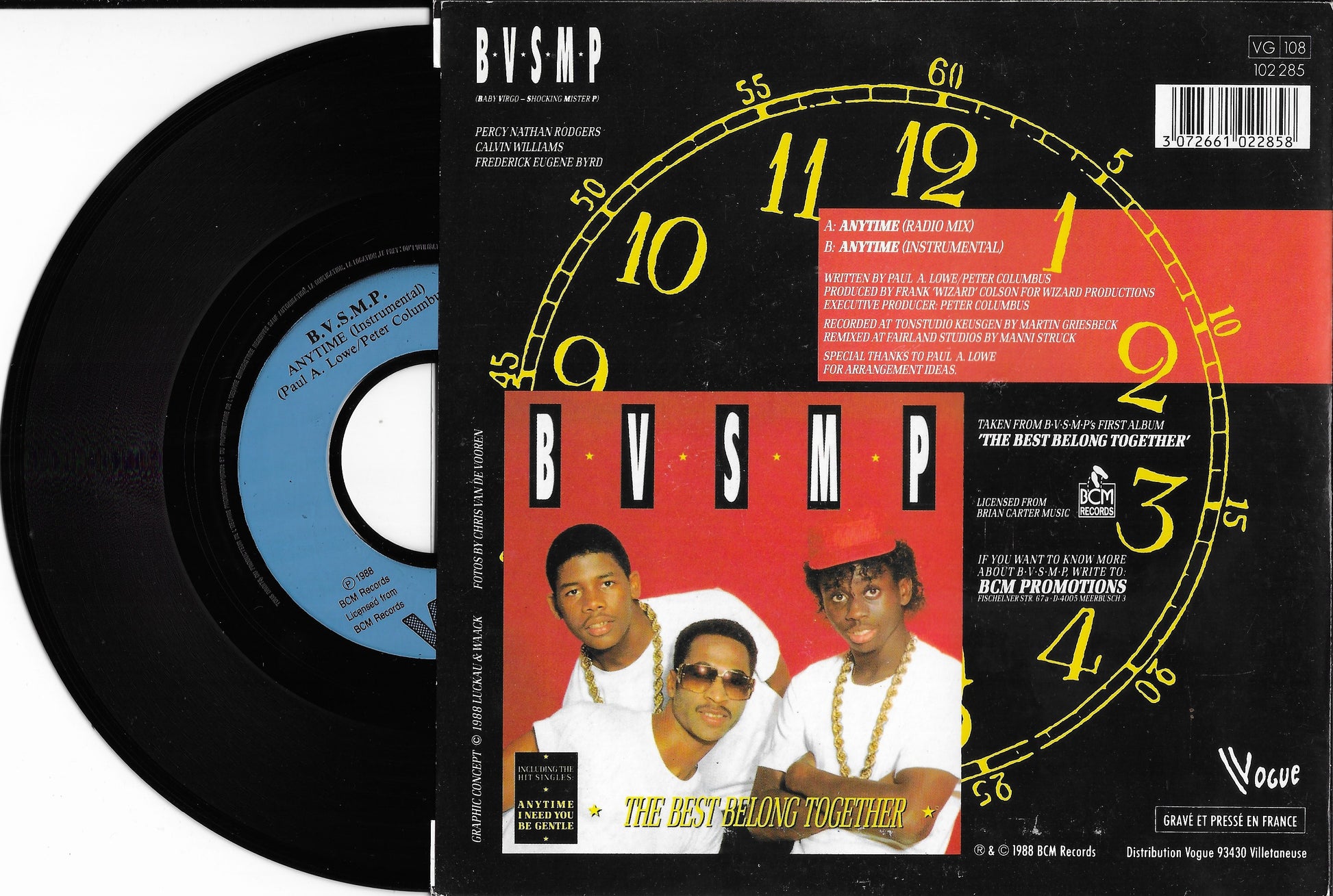 Sorti en 1988, "Anytime" est le morceau qui a propulsé le groupe américain BVSMP au sommet des charts européens. Ce format 45 tours (7 pouces) est la pièce nostalgique par excellence, capturant l'essence même de la Dance-Pop et du Freestyle de la fin des années 80.