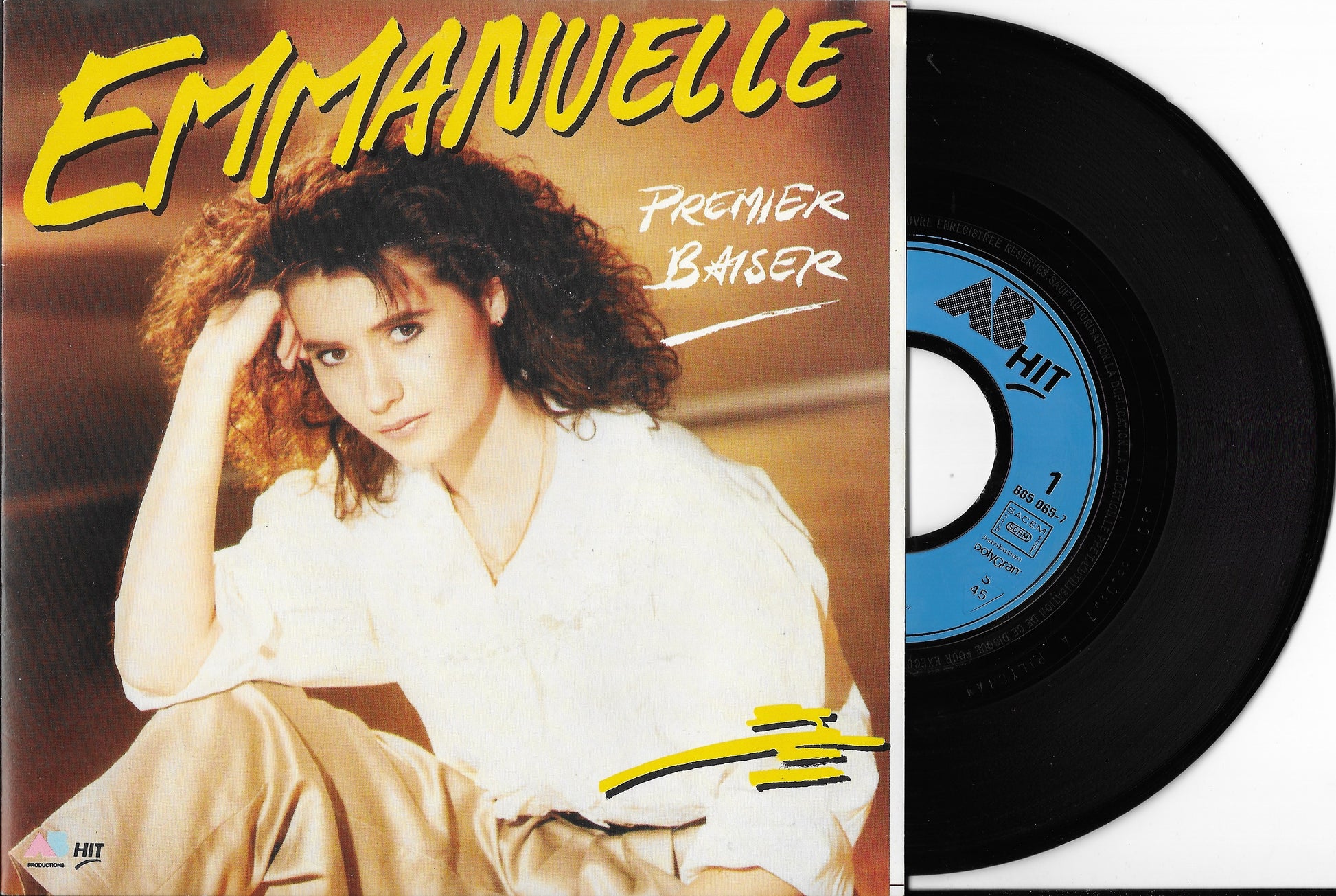 orti en 1986, ce 45 tours marque un tournant majeur pour la collection AB Disques avec le titre "Premier Baiser". Interprété par Emmanuelle, ce morceau devient instantanément un immense succès populaire, porté par une mélodie douce et des paroles qui capturent avec une grande fraîcheur l'innocence des premiers émois amoureux.