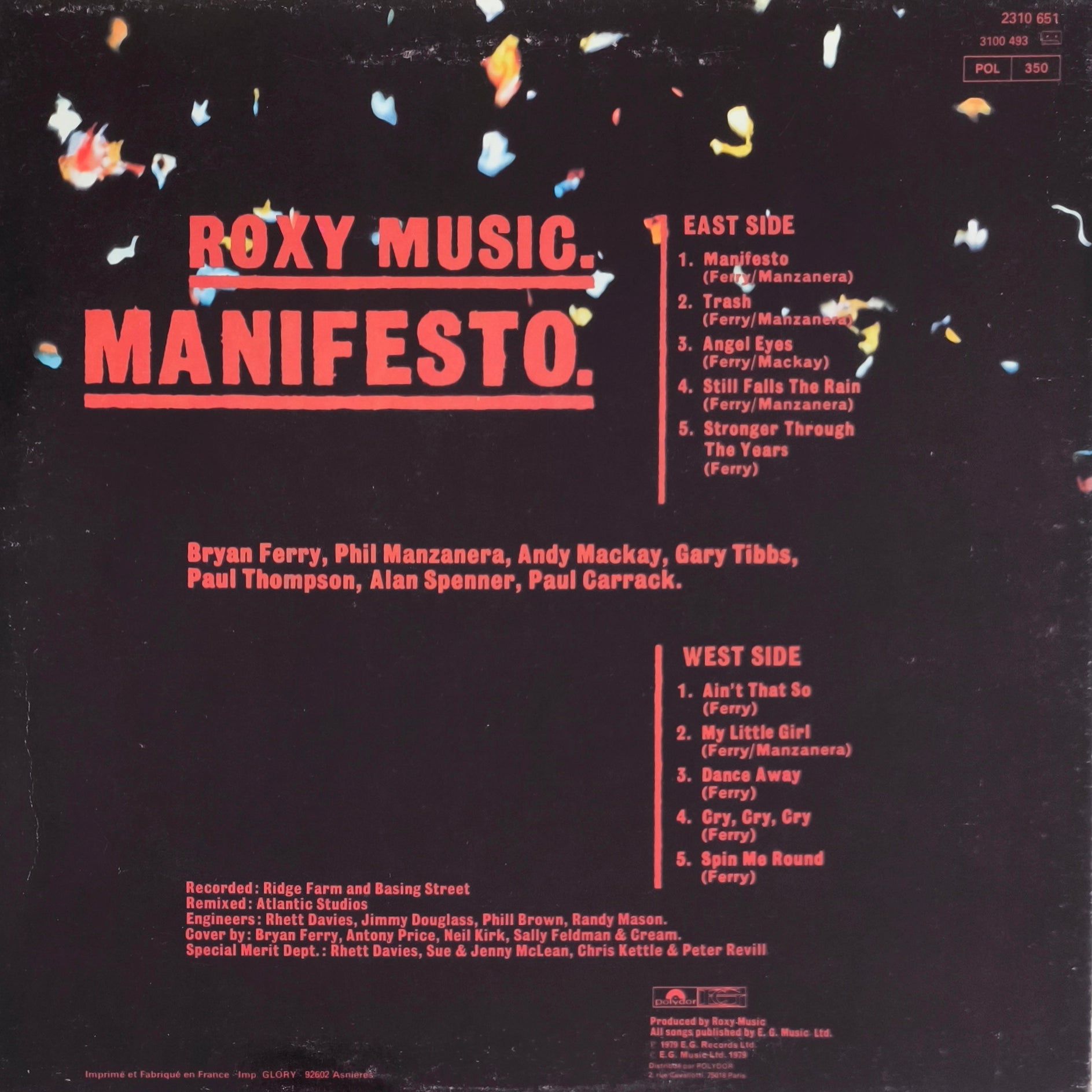 Sorti en 1979, Manifesto marque le début de la seconde vie de Roxy Music. L'album est divisé en deux facettes : une face "East Side" plus énergique et une face "West Side" plus calme et atmosphérique.